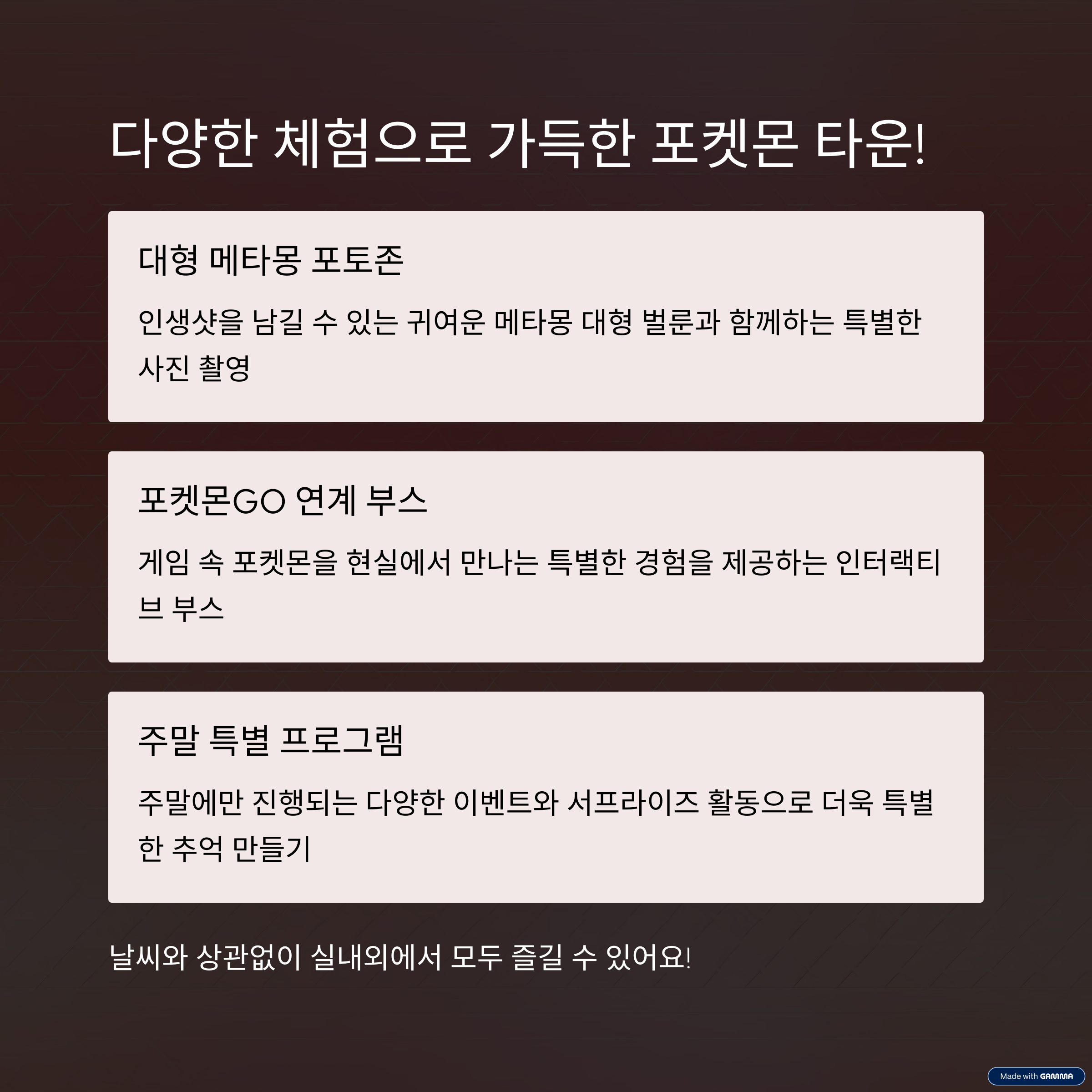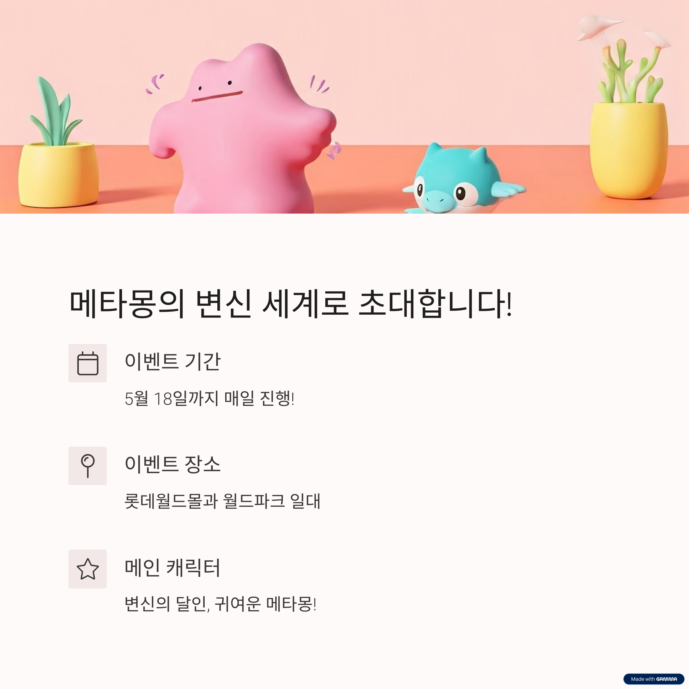 변신 포켓몬 ‘메타몽’을 주인공으로 한 초대형 참여형 이벤트입니다.