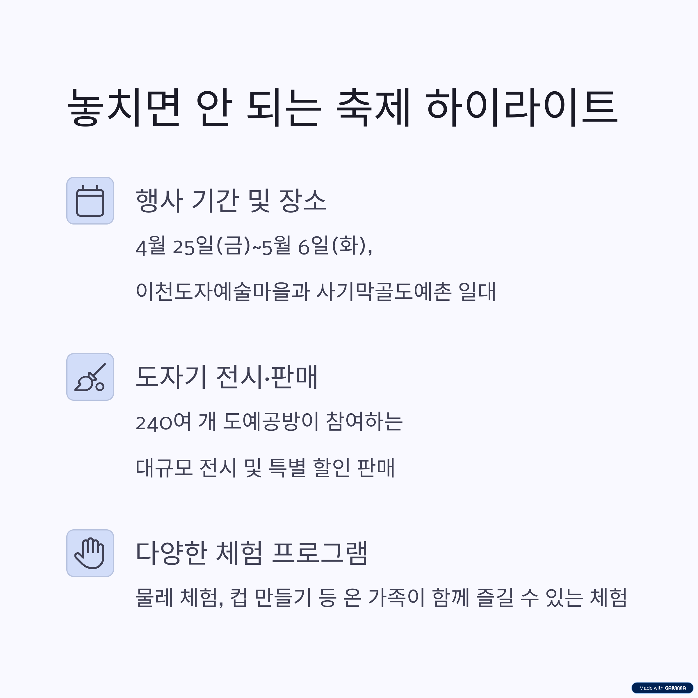 이 축제는 대한민국 도자기 예술의 정수를 만날 수 있는 대표적인 행사로,