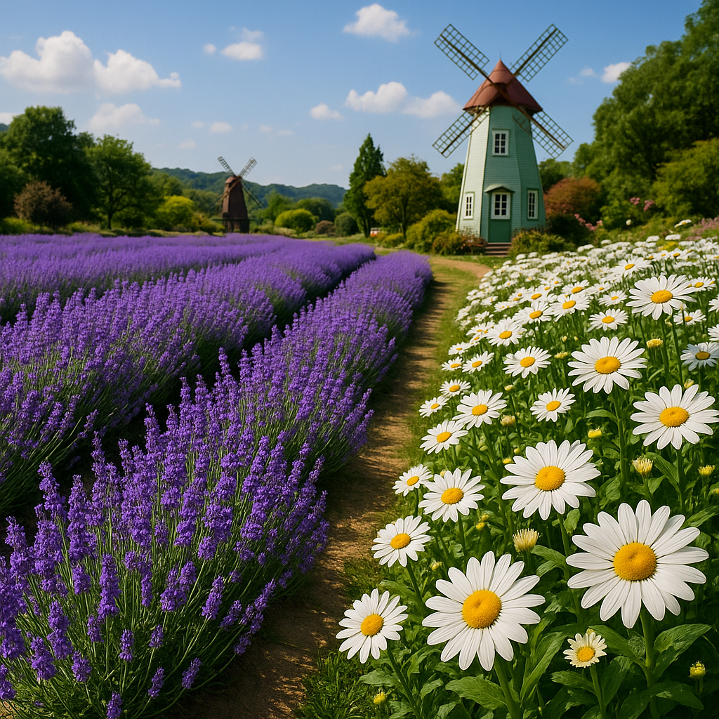 보랏빛 라벤더와 흰 데이지의 환상적 조화를 감상할 수 있는