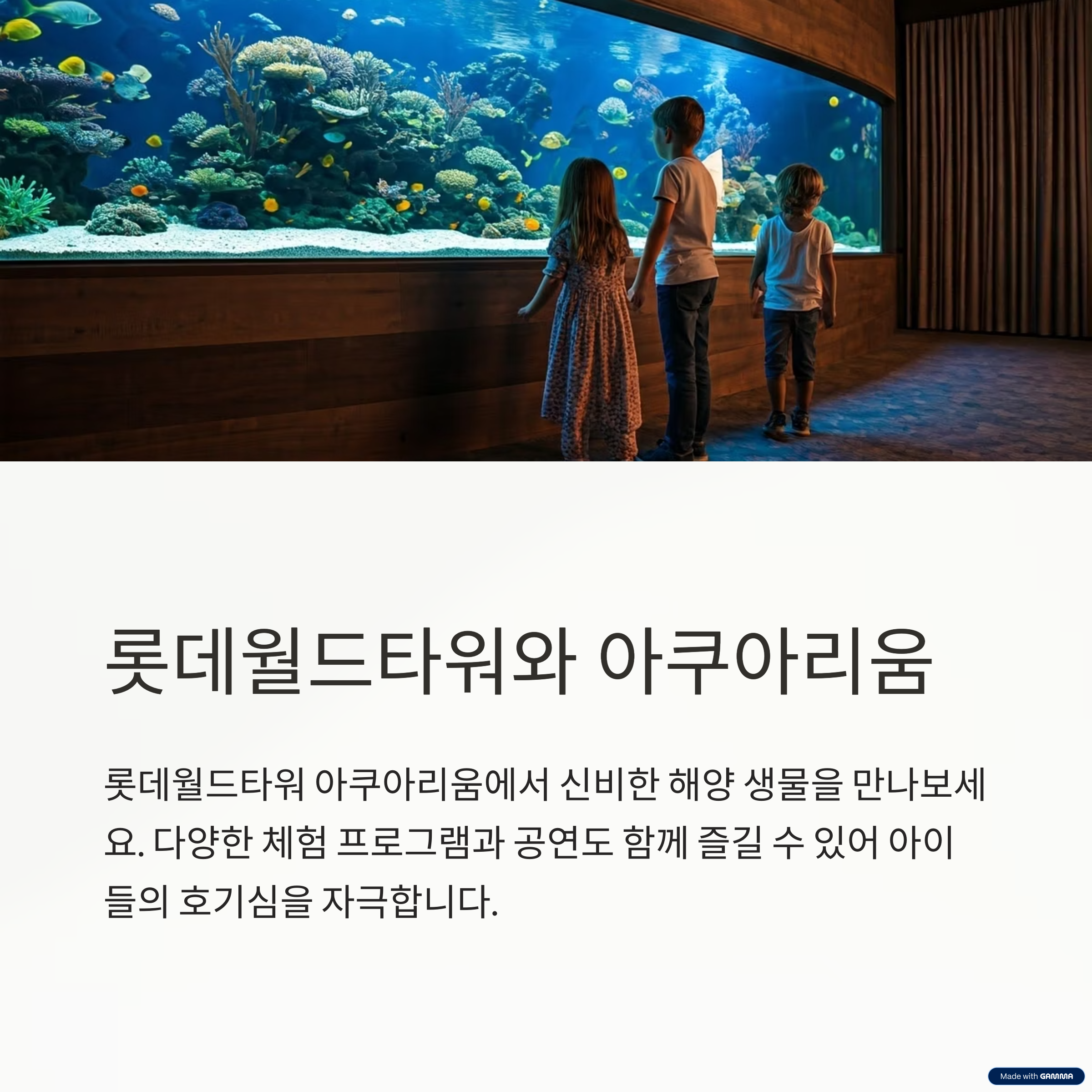 실내에서도 화려한 체험을 원한다면 롯데월드타워와 아쿠아리움을 추천드립니다.