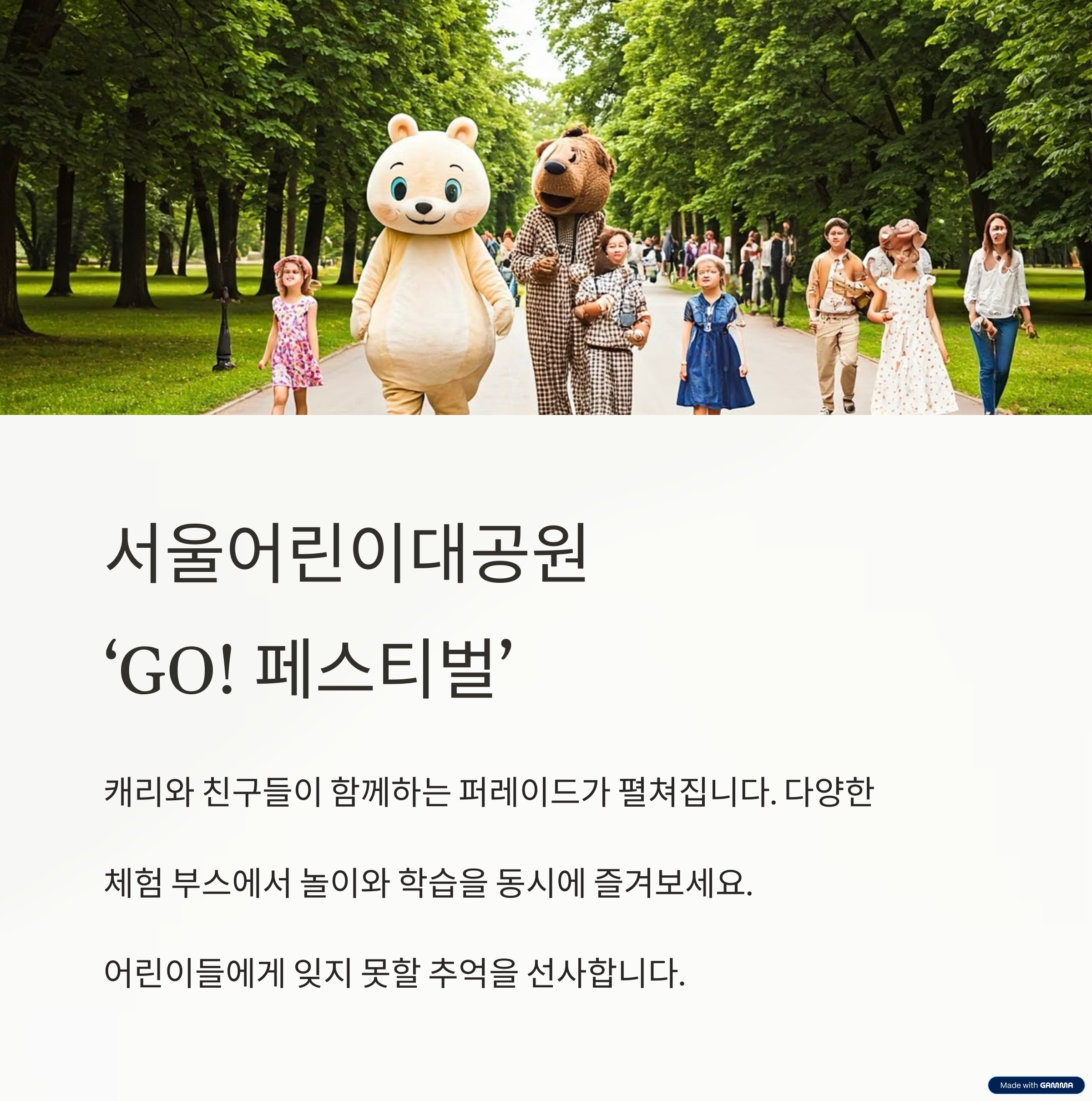 2025년 어린이날, **서울어린이대공원에서는 ‘GO! 페스티벌 with 캐리와 친구들’**이 열립니다.