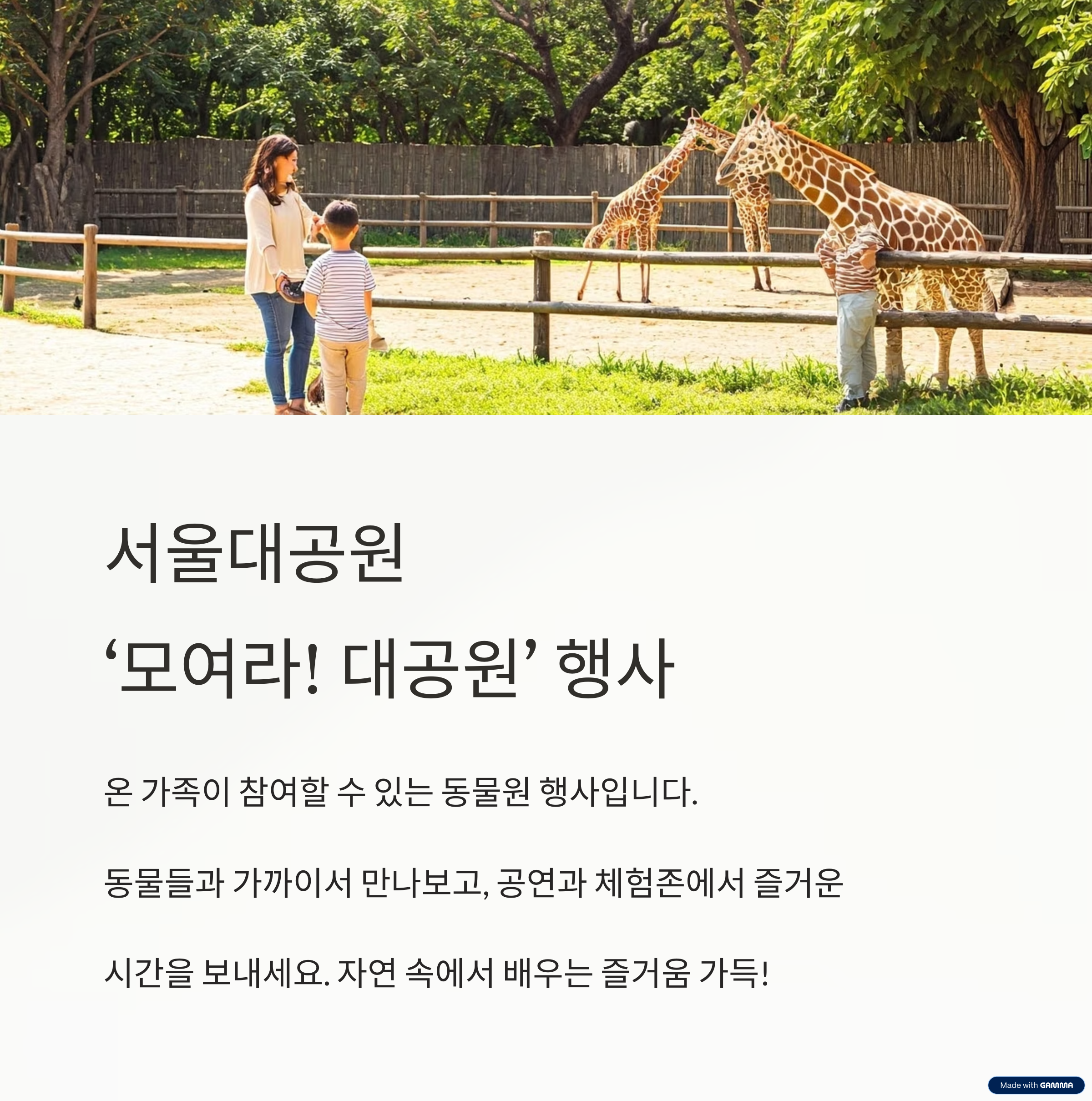 ‘모여라! 대공원’이라는 가족 참여형 이벤트가 진행됩니다.